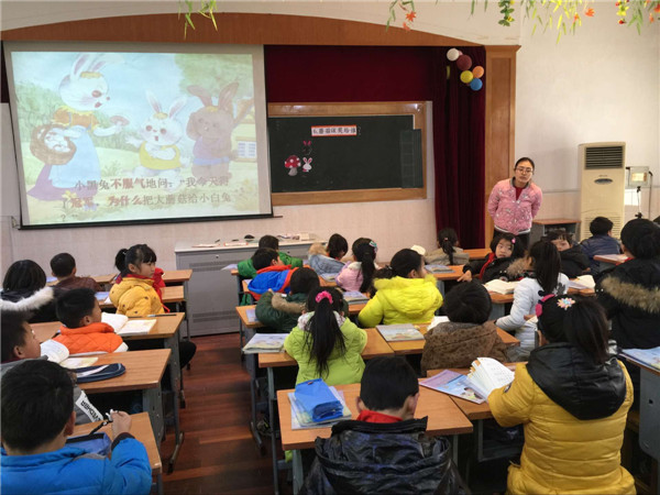 2016年3月1日星期二上午,小河中心小学全体语文老师齐聚阶梯教室,认真观摩了朱丹老师执教的《月亮湾》和闵淑娴老师执教蘑菇该奖给谁》这两节精彩的语文课。