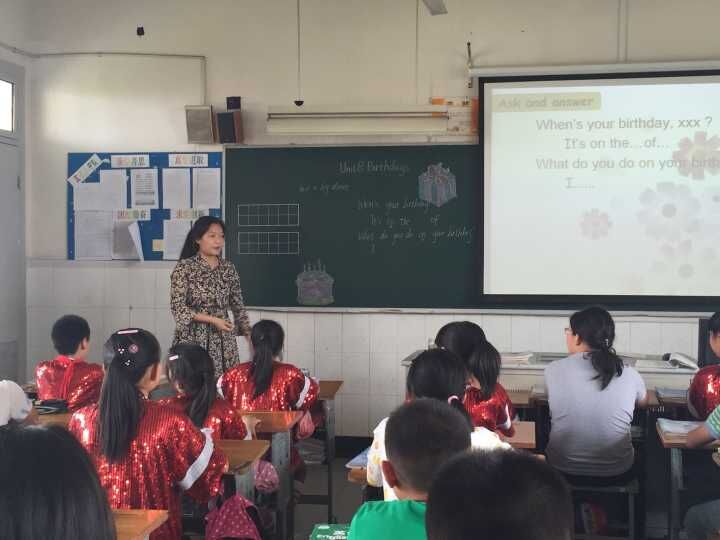 校园内欢声笑语,在为明天的六一大party进行最后一次彩排;五(3)班教室内也齐声放歌,热闹非凡,原来是邓小妹老师在执教五下Unit 8 《Birthdays》。