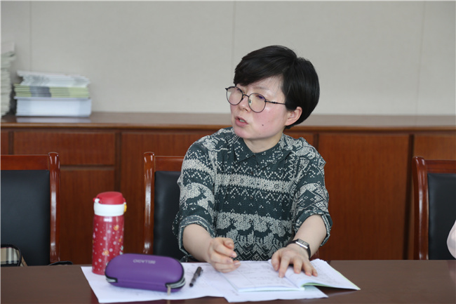 两节课后,两位老师对自己的设计意图与困惑进行简要阐述,领衔人金玉老师组织大家进行互动研讨。