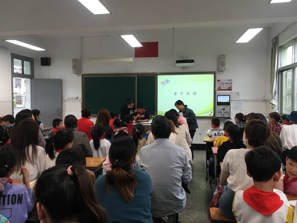 听,二3班传来阵阵诗声,孩子和家长的声音一高一低,一起一伏,激荡着在场所有人的心灵,原来他们正举行亲子阅读活动。家长的陪伴,是孩子最好的礼物。
