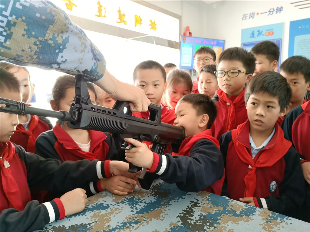 听完英雄们的光辉事迹,队员们到楼下现场观看了战士拆装95式新型自动步枪。看到“真家伙”的那一刻,大家十分兴奋,忍不住欢呼了起来。两位官兵熟练地拆解完步枪后,还邀请队员们摸一摸,一双双因激动而颤抖的小手伸了出去,此刻,他们的内心是火热的!